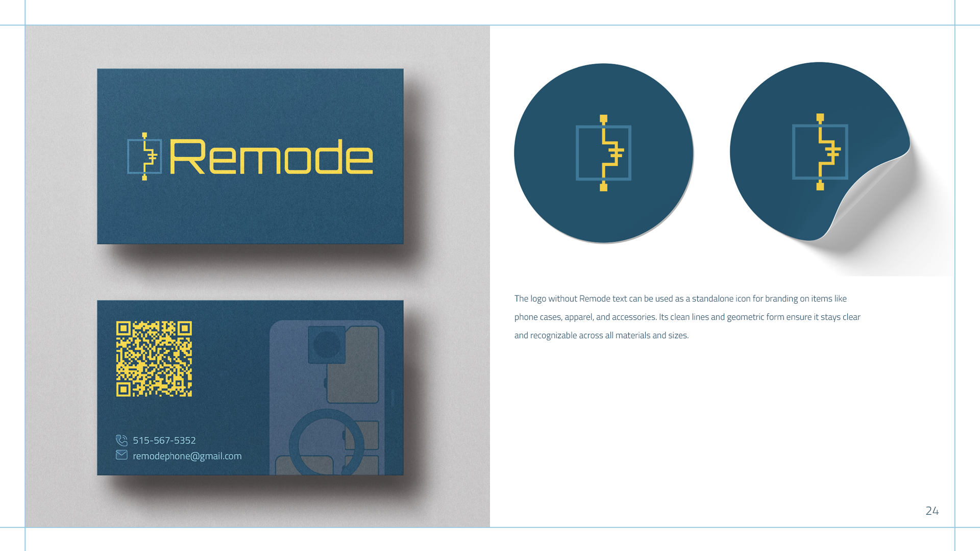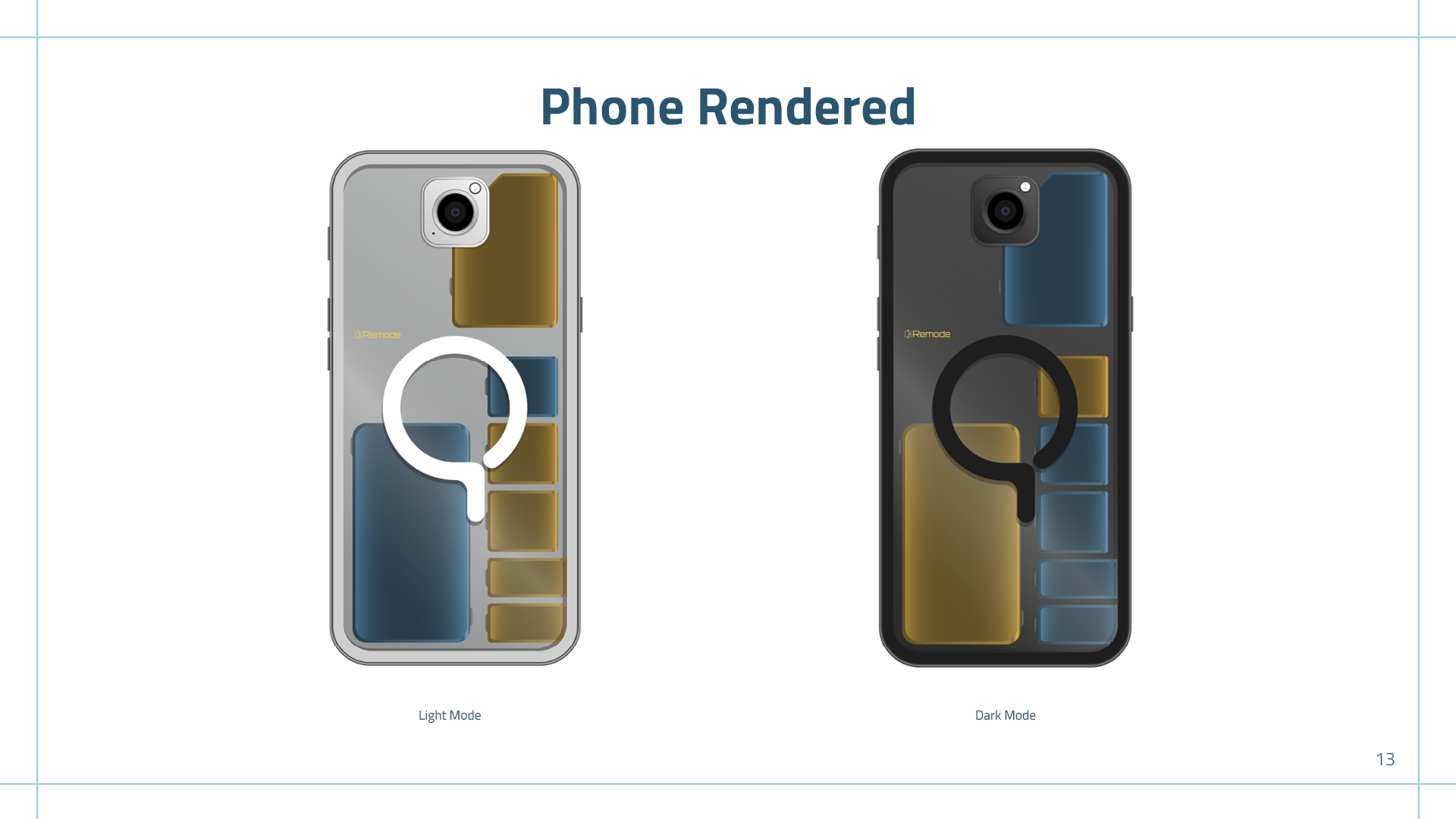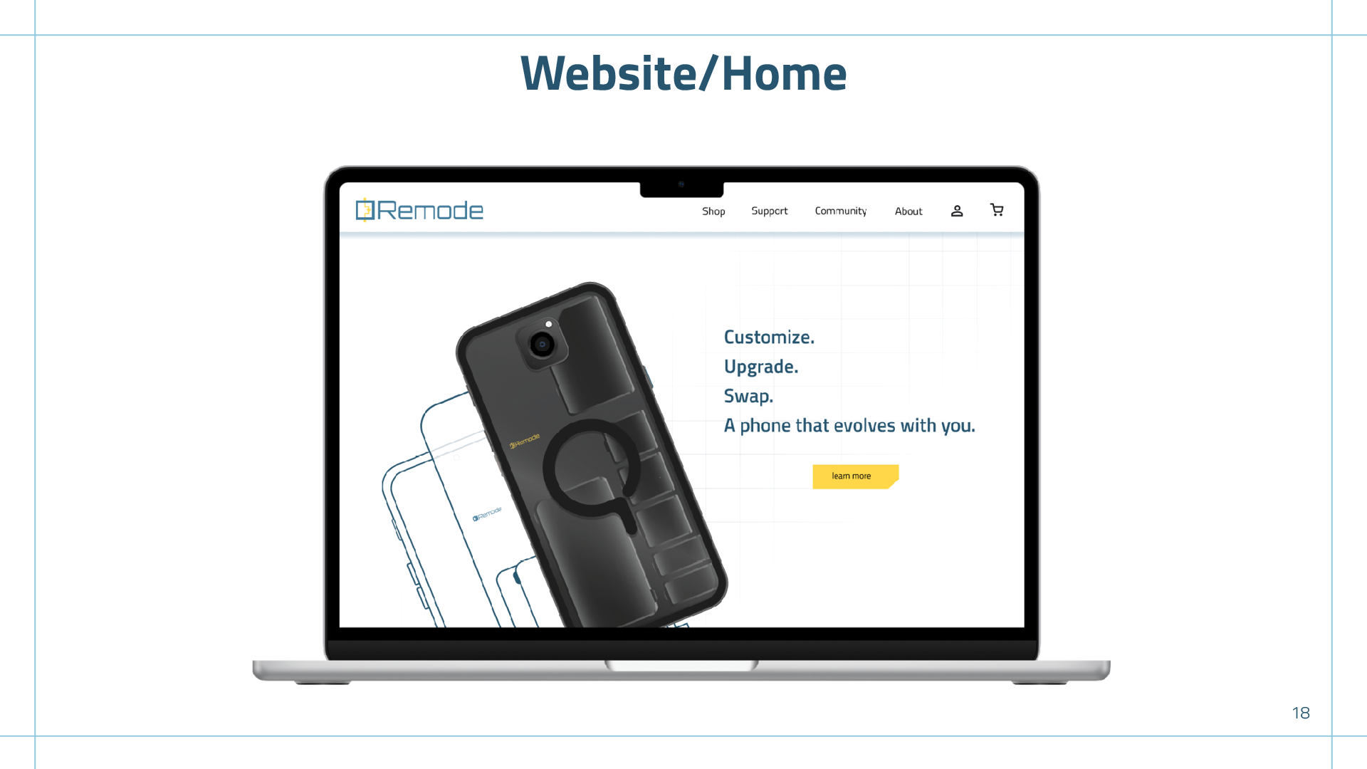 Remode is a modular phone. Its modularity enables upgradeability, reducing electronic waste, while also allowing users to customize their device to fit their needs. I wanted the brand to feel like a trustworthy, high-tech product while still being soft around the corners to welcome all different types of users.